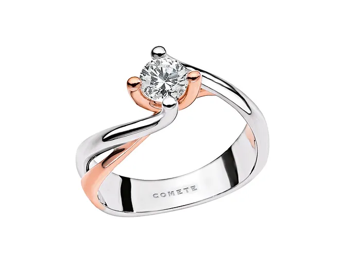 Anello solitario oro bianco e rosa – Comete