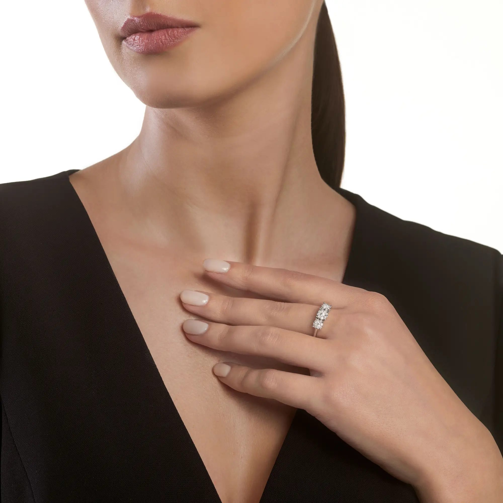 Elegante e luminoso, l’Anello Trilogy Daphne è realizzato in oro bianco 18 kt ed è impreziosito da un raffinato pavé di diamanti naturali per una caratura totale di 0,15 ct.
