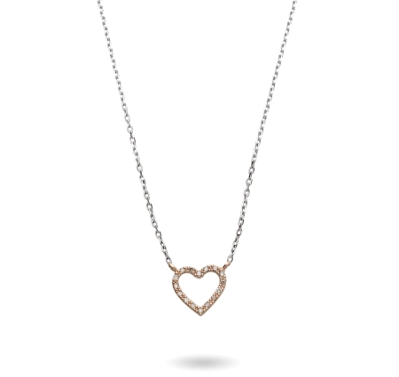 Collana Filodamore in Oro Bianco 9kt e Cuore in Oro Rosa 9kt di Diamanti Bianchi