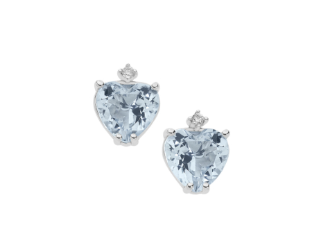 Orecchini in oro bianco 18kt con acquamarina taglio cuore 6 mm di ct. 1,40 e diamanti taglio brillante di colore bianco extra G e purezza SI