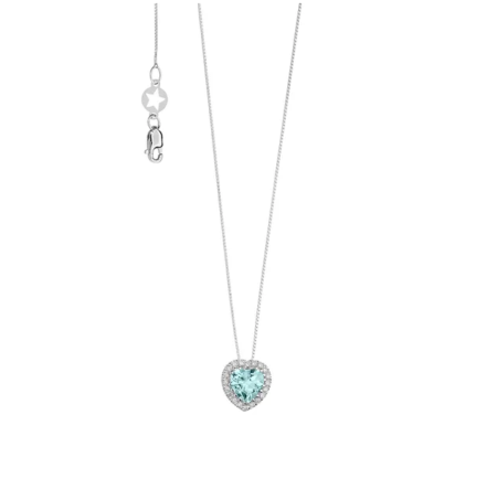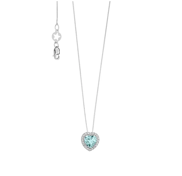 Girocollo in Oro bianco 750. Diamanti P.Ct.8 Colore G Purezza SI, Aquamarina Prestige taglio Cuore 6×6 Ct. 0,75
