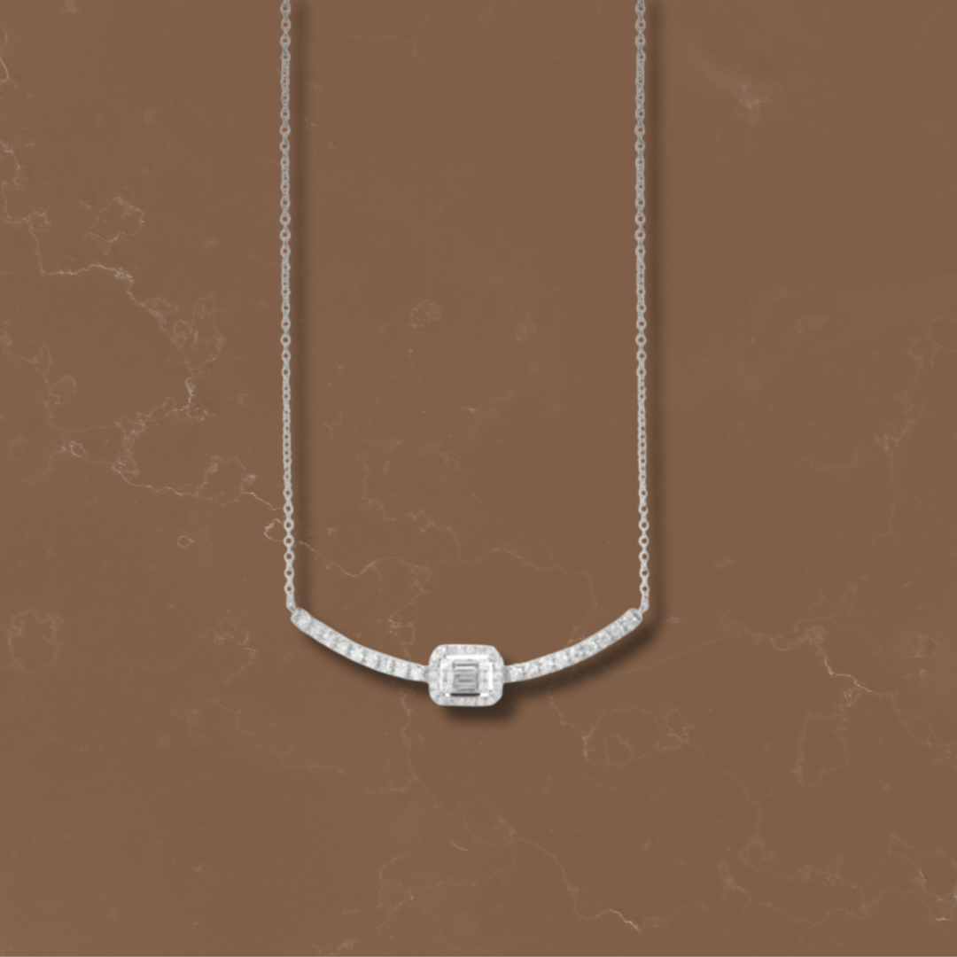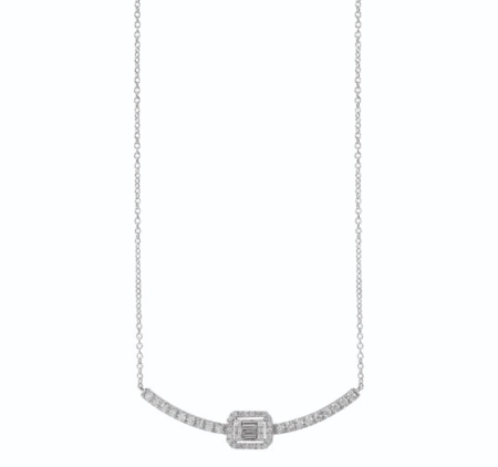 Girocollo in oro bianco 18 kt, con incastonati diamanti taglio brilllante di ct 0,32 e taglio baguette di ct 0,08 di colore G