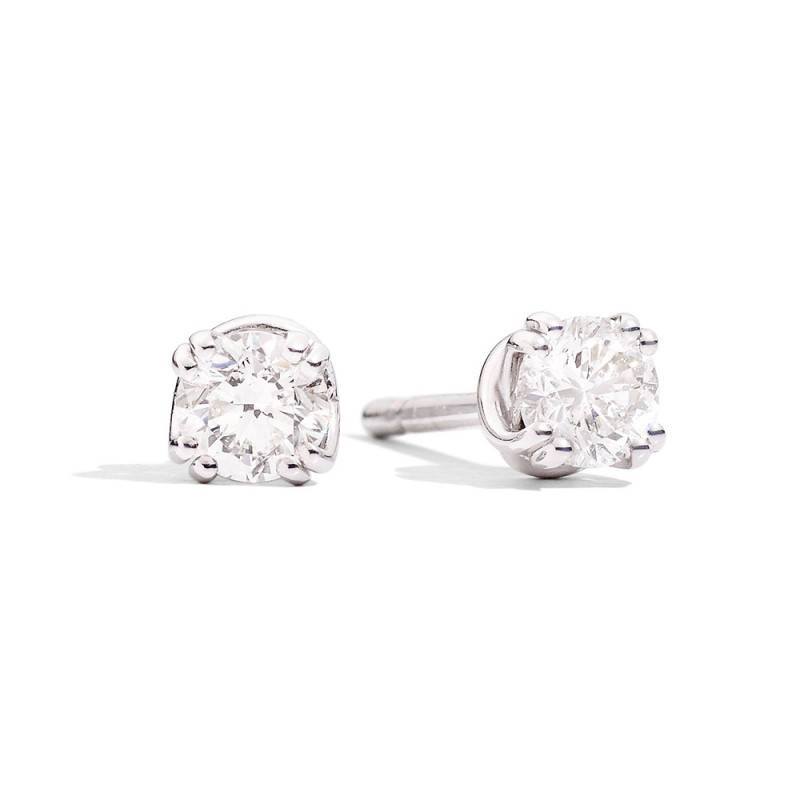 • Orecchini a lobo  in oro bianco 18 kt, con incastonati diamanti taglio brillante di ct 0,57 di colore bianco eccezionale E e purezza SI. Ref E61PX001/B057