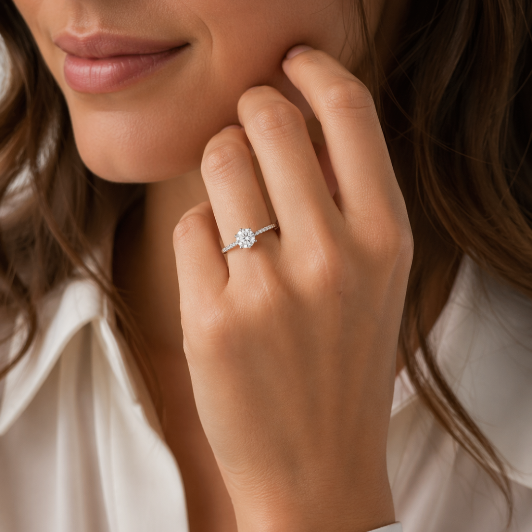Il solitario Anniversary Six di Recarlo si distingue per la montatura a sei punte, pensata per esaltare al massimo la luce del diamante centrale.