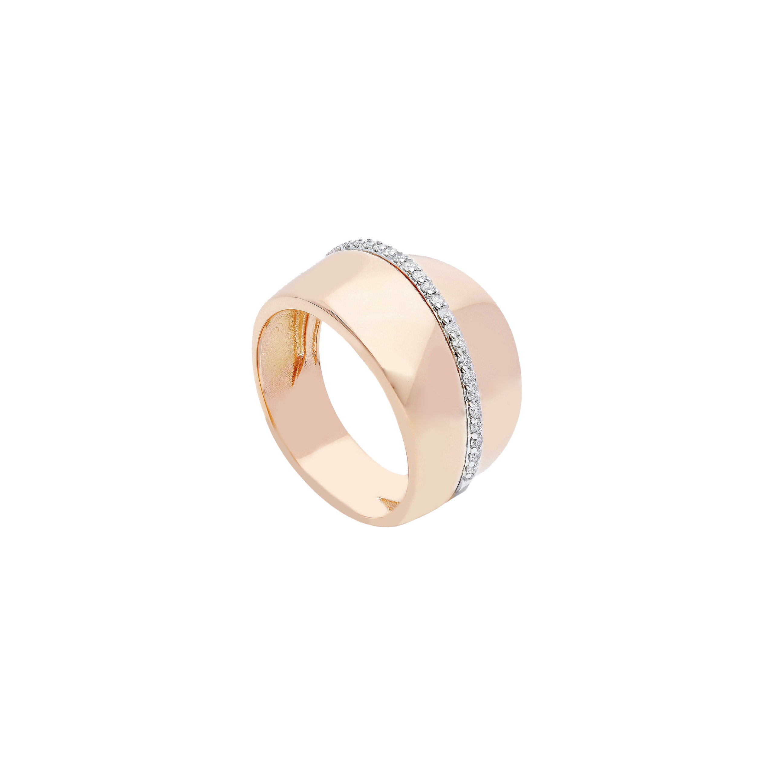 Anello in oro rosa a fascia, con una fila di diamanti naturali, taglio brillante di ct 0,18 colore G.