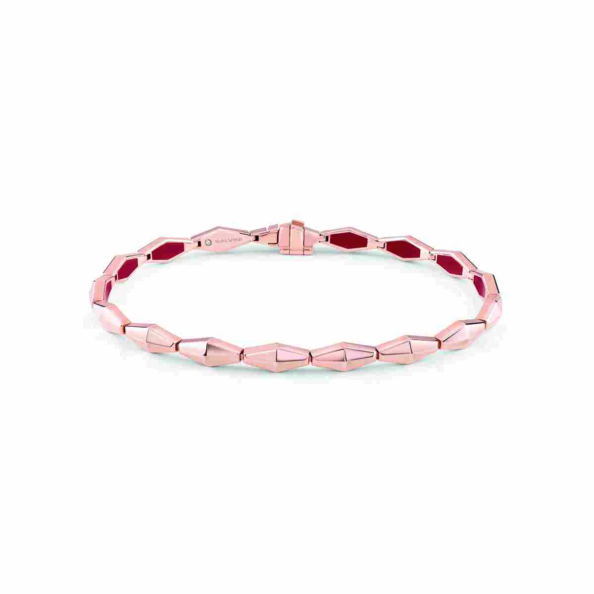 Bracciale in oro rosa della nuova collezione Eva di Salvini con hybrid ceramic rossa, 4,30 mm.