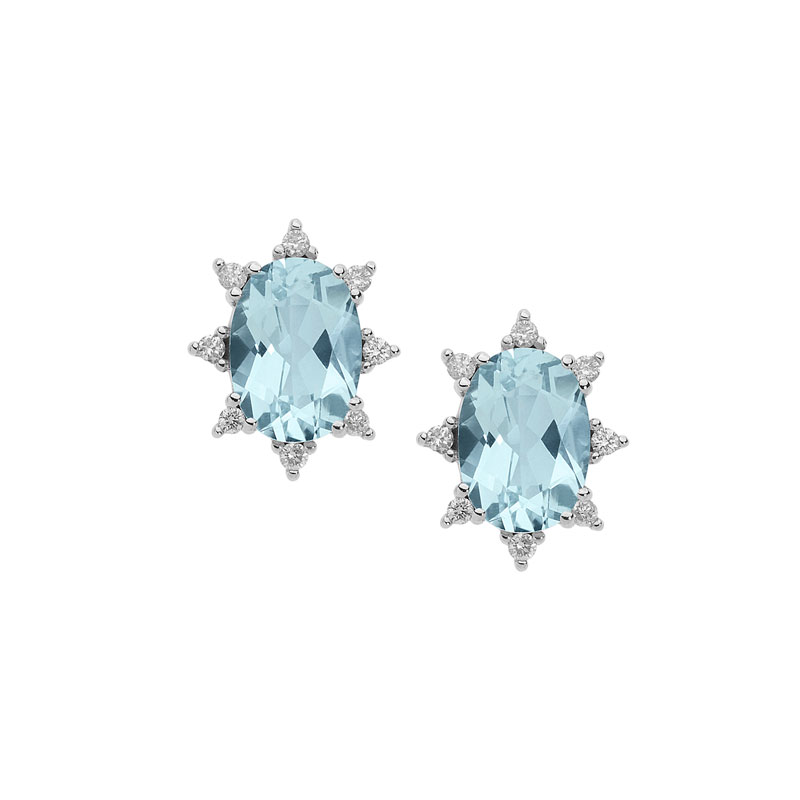 Orecchini in oro bianco 18 KT con acquamarina taglio ovale e diamanti taglio brillante di ct 0,08 di colore bianco extra G e purezza SI REF-ORQ234