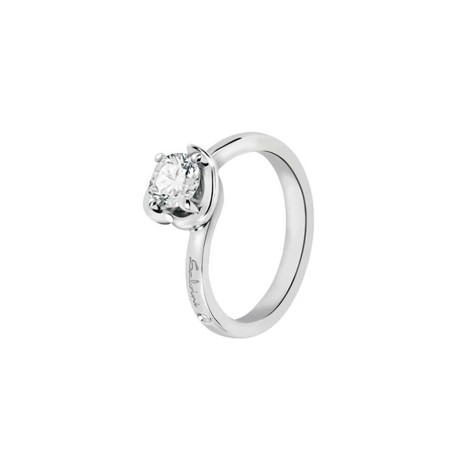 Anello solitario Salvini in oro bianco 18kt con diamante, appartenente alla collezione Abbraccio.